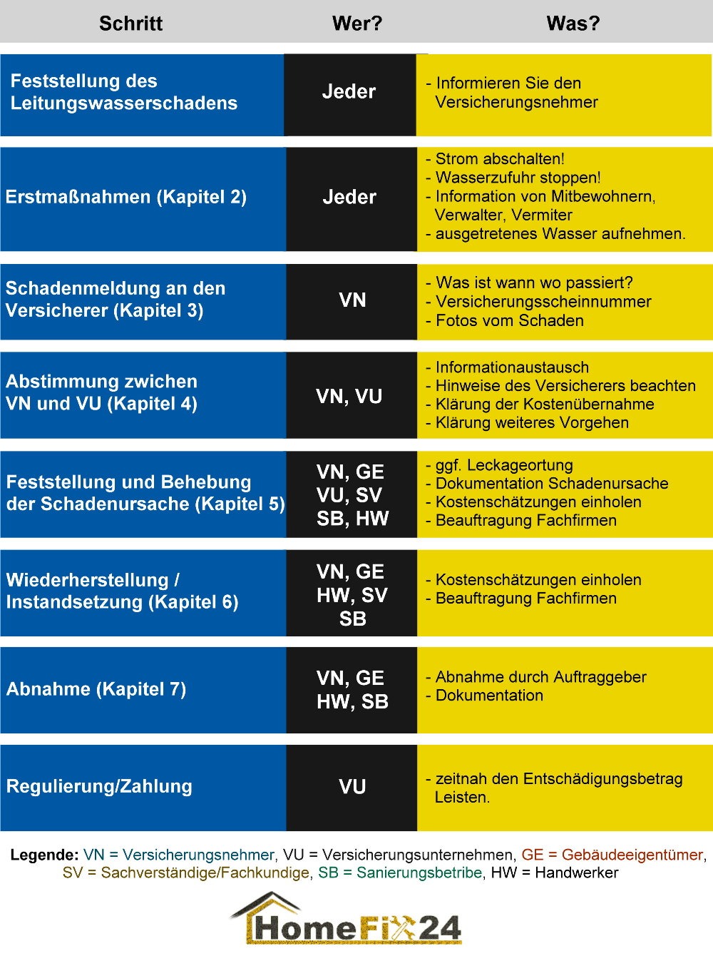 Ein Wasserschaden sollte schnell beseitigt werden, damit keine Folgeschäden auftreten. Nach Auftragserteilung machen wir uns so schnell wie möglich an die Arbeit, damit Sie sich bald wieder in Ihren vier Wänden wohlfühlen können. Wir sind Ihre Wasserschaden Notdienst Friedberg und Umgebung. Der Firma HomeFix24 behebt schnell und zuverlässig Ihren Wasserschaden Sprechen Sie uns an!